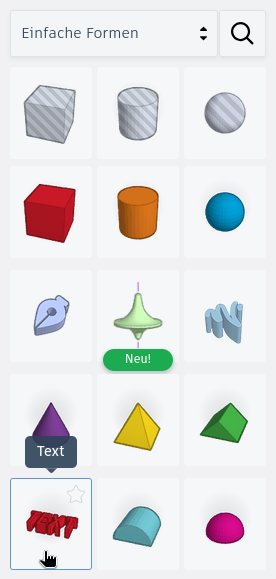 In Tinkercad, klicke rechts auf die Lupe um nach Formen zu suchen.