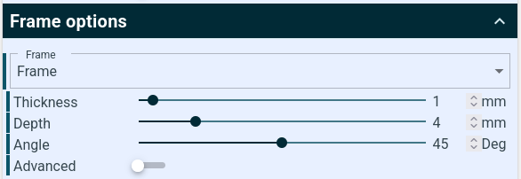 Setze die „Thickness“ (Dicke) des Rahmens auf 1 mm.