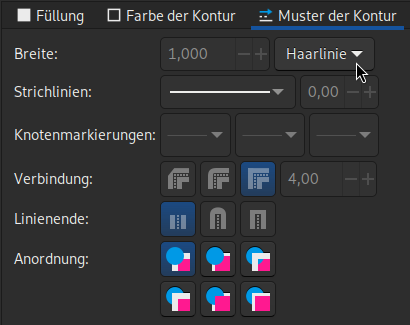 Wähle auf dem Reiter Muster der Kontur als Linienbreite Haarlinie aus: