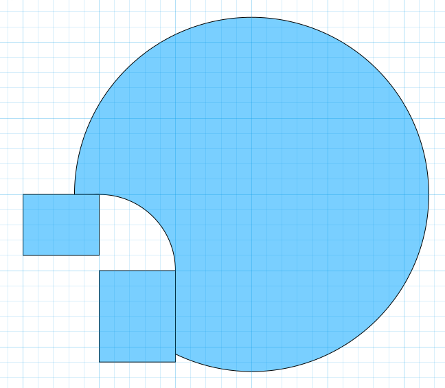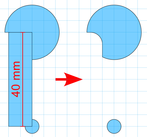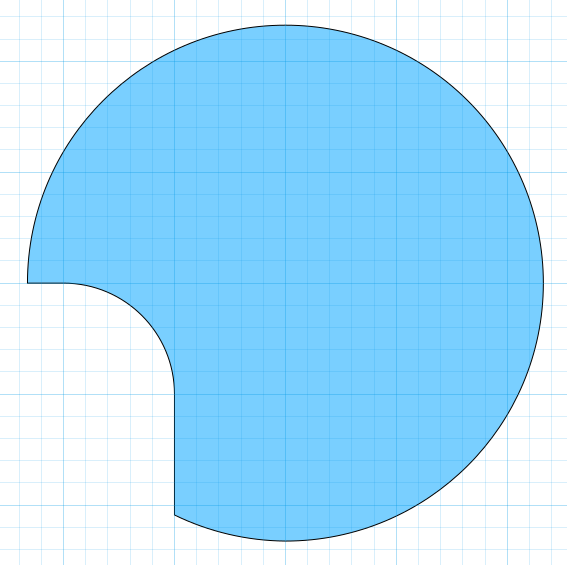 Ziehe nacheinander die beiden Rechtecke vom großen Kreis ab: