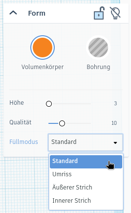 Dupliziere das Ei. Setze danach den Füllmodus auf Standard und die Höhe auf 3 mm. Ändere außerdem die Farbe.